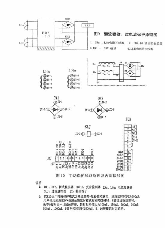 c.涌流吸收裝置是一個(gè)與過(guò)流脫扣線圈一起裝在電流互夠器二次回路當(dāng)中的保護(hù)電路,它的功能是把斷路器在合閘瞬間由于所屬10KV配電線路中實(shí)際存在的阻抗所引發(fā)的瞬間強(qiáng)大電流(合閘涌流)在電流互感器二次側(cè)短路掉,不使這個(gè)合閘涌流進(jìn)入過(guò)流脫扣器線圈而產(chǎn)生誤分閘動(dòng)作。涌流吸收裝置裝在斷路器操作機(jī)構(gòu)掣.,其電氣原理圖見(jiàn)圖9。