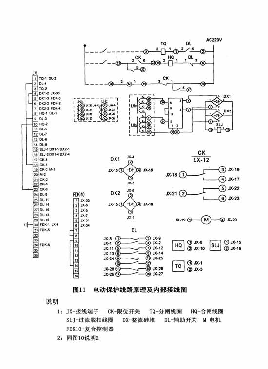 7、斷路器控制系統(tǒng)的原理圖及接線圖見(jiàn)圖10、圖11。