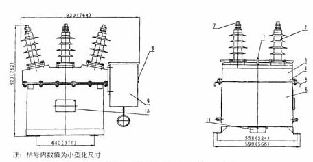 1. 吊環(huán)2.瓷套3.箱蓋4.密封件5.起吊耳環(huán)6.箱體7.導(dǎo)電桿8.分合閘指示9.操動(dòng)機(jī)構(gòu)10.銘牌11.空氣過(guò)濾裝置