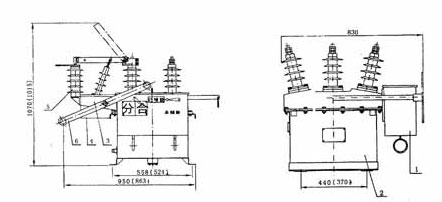 1. CT23機(jī)構(gòu)2.斷路器本體3.隔離刀閘4.電動(dòng)機(jī)構(gòu)5.支持絕緣子(可帶避雷器)6.分合閘手柄